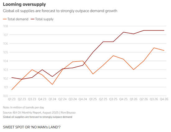 国际能源署(IEA)预测,明年石油市场将出现400万桶/日的巨额过剩,接近全球需求的4%,这可能导致油价暴跌,迫使许多生产商大幅减产。