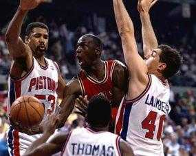 乔丹当年被微笑刺客伊塞亚托马斯的活塞按在地上摩擦的时代,新星的乔丹几乎凭一己之力带公牛进季后赛,但是那时候的以伊塞亚托马斯为首的坏孩子军团活塞,在季后赛对乔丹的防守可以说是连防带打,乔帮主那时候还没有皮蓬和罗德曼,连续三年被坏孩子军团的活塞吊打。