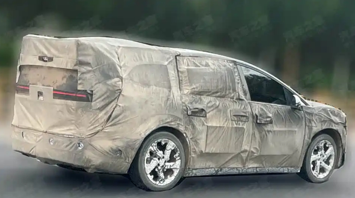 从车身侧面来看,疑似理想i9伪装车的整体车身线条与理想i8较为相似,但是伪装车的尾部目前看起来很奇怪,车尾的伪装非常厚,可能尾部造型还没有正式确定。