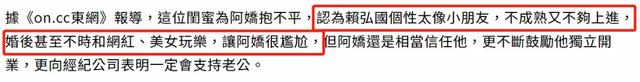 “赖弘国婚后仍与网红、美女玩乐,让阿娇很尴尬。”