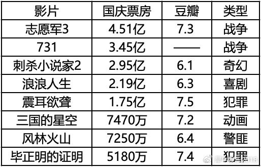 当然还有另一种情况,如果品质真的能够过硬,甚至到了高人一等的级别,豆瓣达到8分+,就能够完成降维打击,哪怕在选题不足的情况下依然能够靠品质完成破圈,暑期档的《浪浪山小妖怪》便是如此。从这个角度来看,国庆档品质不错,但并未达到真正的顶级,这是无法完成黑马长线的另一原因。