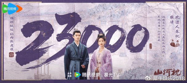 10月30日,腾讯视频、光线传媒联合出品,改编自墨书白晋江文学城同名小说的《山河枕》在腾讯视频正式开播,并在上线37分钟后登顶猫眼剧集实时热度榜。