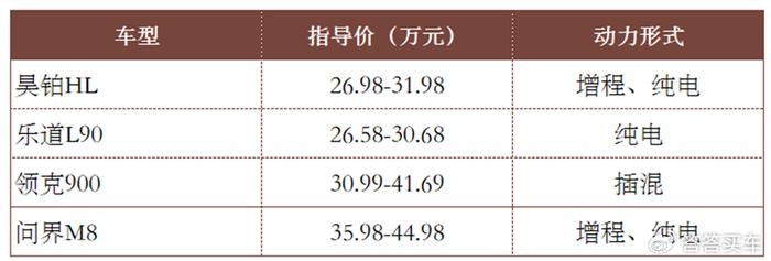 昊铂HL拥有增程和纯电两种动力可选,今天我们要说的是增程版。它共推出了四个版型,价格从26.98万到29.98万元。而同样拥有增程动力的问界M8,起步价达到了35.98万,两车的门槛价相隔9万元,这笔钱都够买一辆不错的家用小车了。