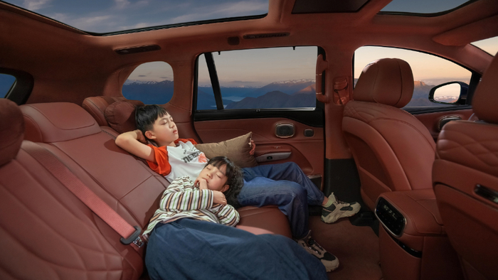 一些贯穿全车的用心细节同样值得一提:高配车型上配备了支持紫外线杀菌的车载冰箱,无论是冷藏孩子的酸奶,还是为长辈存放药品,都非常实用;而“无风感空调”则能温和地调节舱内温度,避免冷风直吹带来的不适,尤其照顾到了老人和小孩的健康需求。