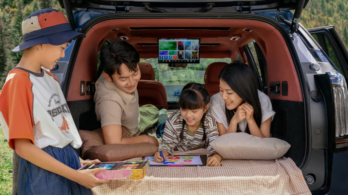 除了前排的三块屏,二排双固定扶手屏也让乘客能轻松控制空调、座椅和娱乐系统。而高配车型独有的17.3英寸后排吸顶屏,更是孩子的专属影院,支持独立影音,能有效安抚旅途中的小朋友。