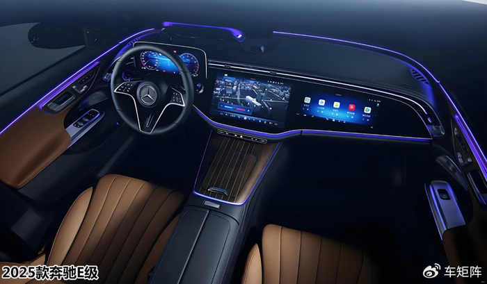 海外版车型尺寸为4949 mm × 1880 mm × 1468 mm,轴距2961 mm。国产奔驰E级将加长至5092 mm,轴距加至3094 mm。预计车内仍会采用全液晶仪表盘和悬浮式中控液晶屏的组合,真皮材质随处可见,座舱设计豪华感比较强烈,高配车型则有望搭配MBUX超级屏幕和氛围灯带,提升豪华科技属性。动力预计仍提供2.0T发动机+48V轻混系统、3.0T插电混动版本,匹配9速自动变速箱及全时四驱系统。
