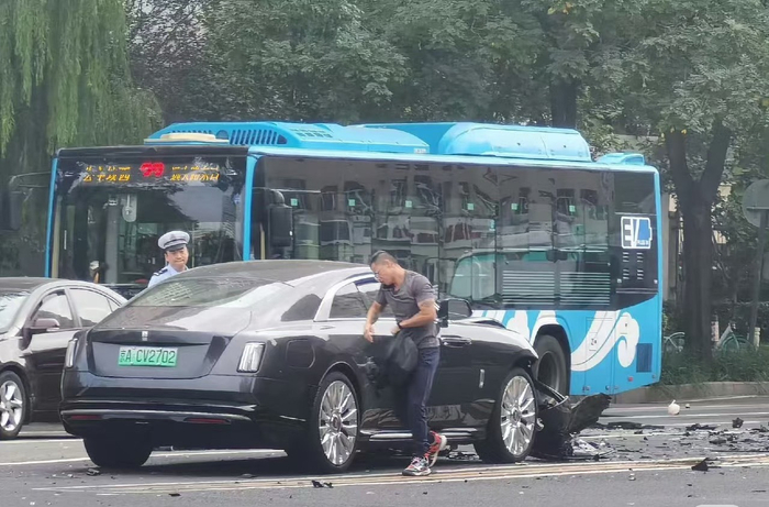 陈震驾驶劳斯莱斯发生车祸无伤亡