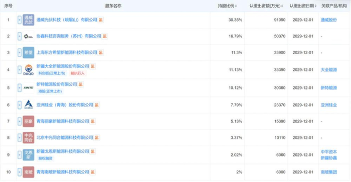 从股东来看,有通威、协鑫、东方希望新能源、大全能源、新特能源等10家光伏企业共同成立,其中9家为硅料生产企业。
