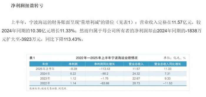 文章开头提到的宁波海运,今年上半年的公司营收虽然达到了11.57亿元,但是净利润的亏损却扩大到了3923万元,相比之下,去年同期亏损的额度为1838万元,也就是说亏损进一步扩大了。