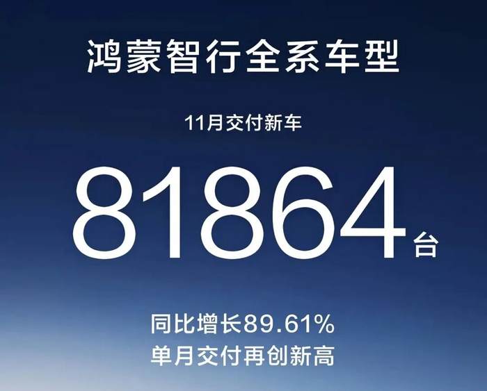 鸿蒙智行交付81864辆