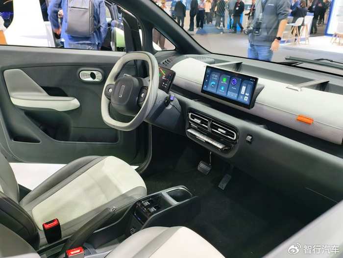 虽然是个小车,但麻雀虽小五脏俱全,内饰设计很有科技感。中间配备有10.25英寸的悬浮触控屏幕,能够支持Carplay手机互联,同时它还配备有5英寸的液晶仪表以及部分实体按键。另外两款车还别出心裁的在前风挡下方设计了一个巨大储物格,在空间利用方面有点巧思在里面的。