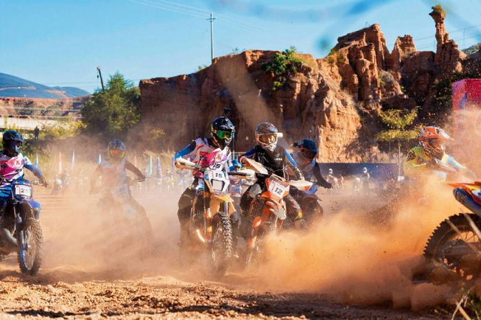 元谋作为云南省重点打造的“四季康养之城”、“赛事之城”,凭借温暖干爽的气候和独特的地貌资源,已成为越野摩托运动的理想之地。本次赛事赛道依托土林自然景观打造,赛段全长7.2公里,涵盖陡坡、石头阵、木桩路等高难度障碍,不仅充分展示越野摩托的速度与激情,更为观众呈现一场人与自然共舞的视觉盛宴。