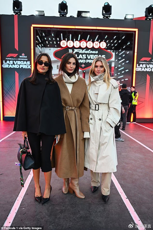 威廉姆斯车队车手卡洛斯·塞恩斯的女友丽贝卡·唐纳森,穿着卡其色束腰大衣,看上去就很温暖。而法拉利车队车手查尔斯・勒克莱尔的女朋友亚历山德拉·圣·米勒,虽然上半身还不错,但此时光腿穿七分裤,多少有些一言难尽。