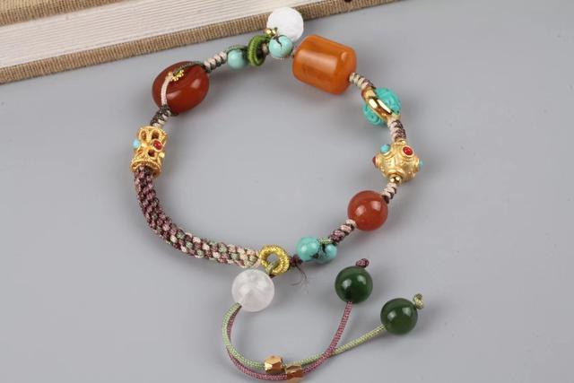 做diy是一种很有乐趣的事情,搜刮几件家里不用的珠子,不要求大小形状颜色,用玉米结,金刚结这样把它们连接在一起,就是年轻女性的百搭手上手链。