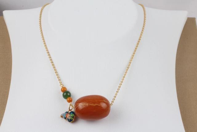 比较高挑清瘦的女士可以用金属链子把蜜蜡枣珠这样穿起来,简单搭配几粒配珠即可,也可以将配珠放在脖子后面单独一个主珠做锁骨饰品,这种厚重感是新色蜜蜡难以表达的美。
