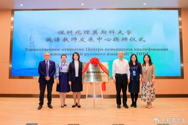 开幕式上一个引人注目的亮点是深圳北理莫斯科大学俄语教师发展中心的揭牌仪式,该中心将作为俄语教育的创新高地,引领学校俄语教学迈向新台阶。随后,还举行了外语教学与研究出版社的赠书仪式,旨在为深北莫俄语教师提供丰富的教学资源支持,以不断提升其教学水平。