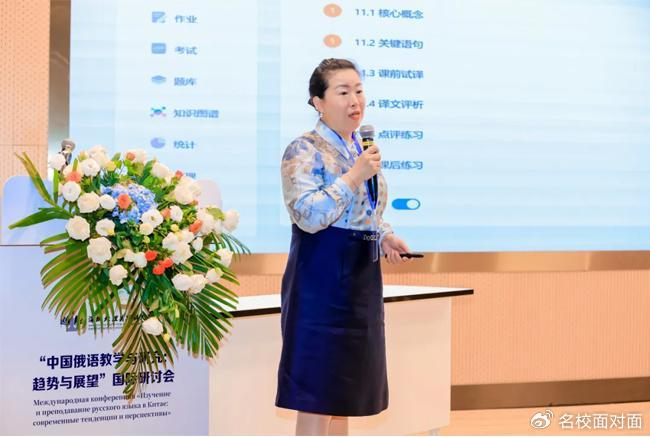 中国俄罗斯东欧中亚学会俄语教学研究分会秘书长、北京大学的张冰教授代表中国俄语教学研究会致辞。她指出,俄语学科建设与俄语人才培养面临新的机遇与挑战,需要新视野、新模式、新思维。面向未来,推动中国俄语教学理论与实践探索向纵深发展是摆在中国俄语学人面前的现实问题,并感谢深北莫通过此次会议为中国俄语教学这一主题的深入研讨提供了平台。