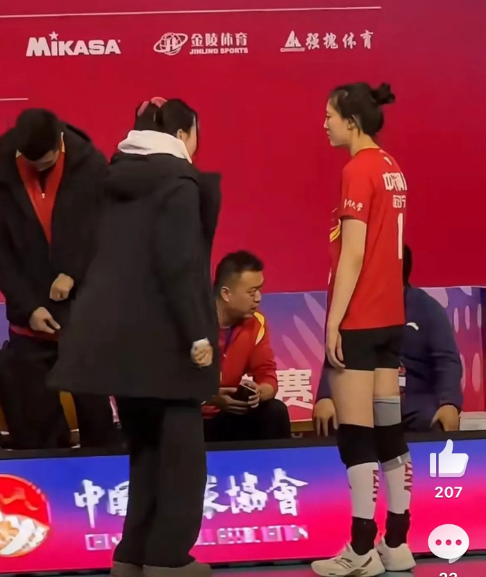 昨天,在江苏女排3:1河南的比赛后,江苏球迷分享了一段视频,是张常宁在场边传帮带范泊宁的!