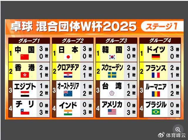▽2025年乒乓球混合团体世界杯日本队赛程与结果