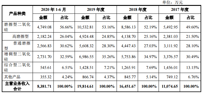 据悉,广西满庭芳精细化工有限公司在2017年、2018年、2019年和2020年1-6月期间累计收入大于100万元的重叠客户占金三江营业收入的比例分别为46.27%、57.72%、59.64%、62.91%,其公司主要生产产品为碳酸钙,而金三江主要产品为牙膏用二氧化硅产品,两家公司存在多数的重叠客户。