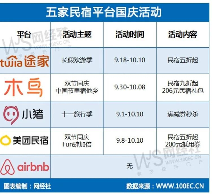 此外,针对国庆假期,途家、木鸟民宿、小猪民宿、美团民宿纷纷推出优惠活动,刺激用户消费。
